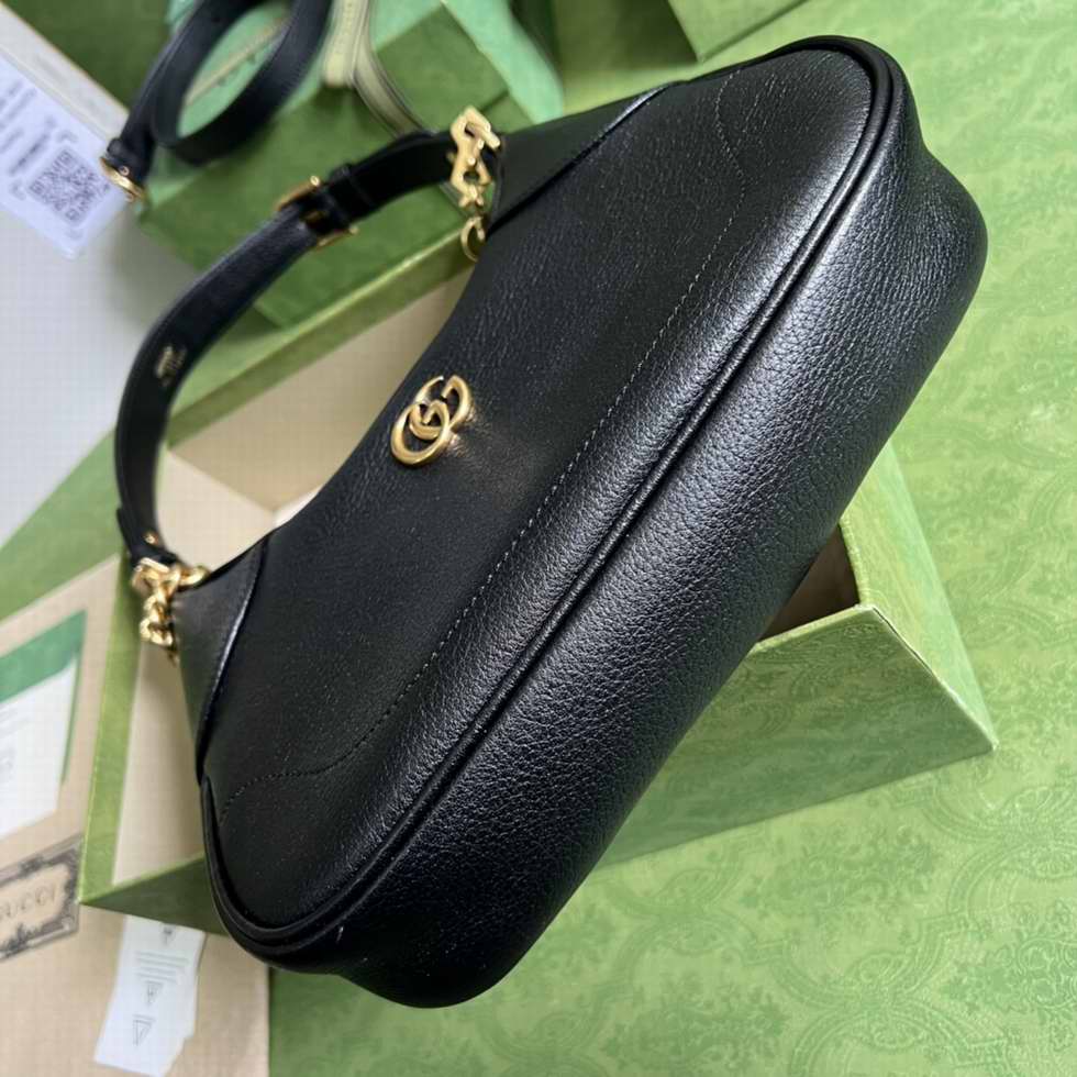 The Cruise 2023 Gucci Cosmogonie collection was presented against the backdrop of the historic Castel del Monte in Italy. The show brought together aesthetics from distant eras and geographies, and linked elements from the past with the present. This new small crescent-shaped shoulder bag was inspired by the House??s archives, it is crafted in soft leather and features the Double G emblem??a code originally introduced in the 1970s. Embodying the notion of the versatility, the bag is enriched with two shoulder straps, one is crafted in leather and the other is in Gucci??s recognizable gold-toned chain design.