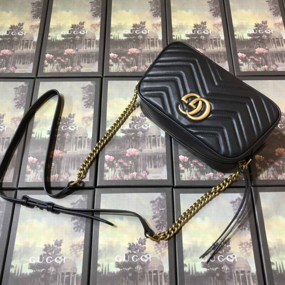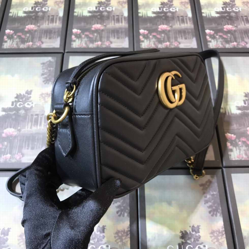 Black matelasse chevron leather with GG on the back