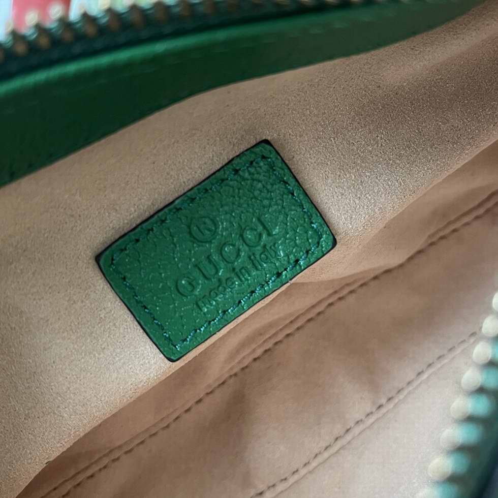 A nod to styles popular during the late 1990s and early 2000s, the Aphrodite line welcomes a new shape with this small shoulder bag, which pairs the essential design with pop colors and the unmistakable Double G hardware, for a sleek yet unexpected look. Here, it's presented in a soft light pink leather with a gold-toned zip closure.