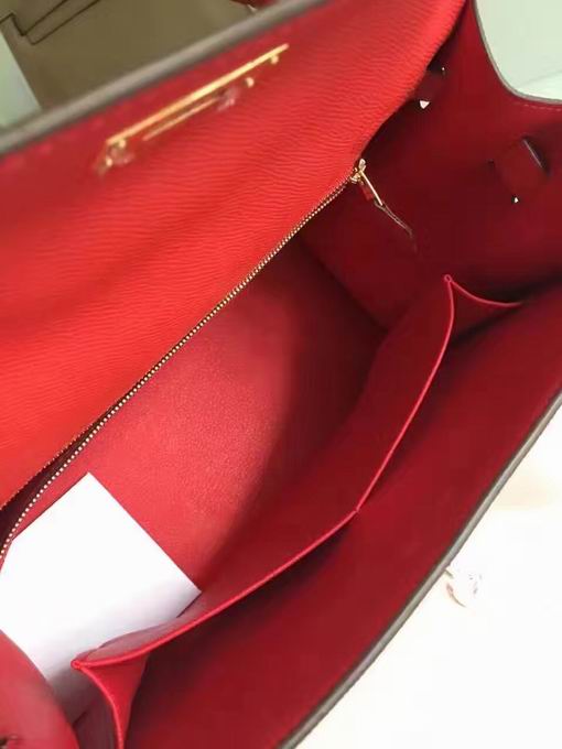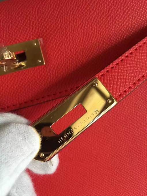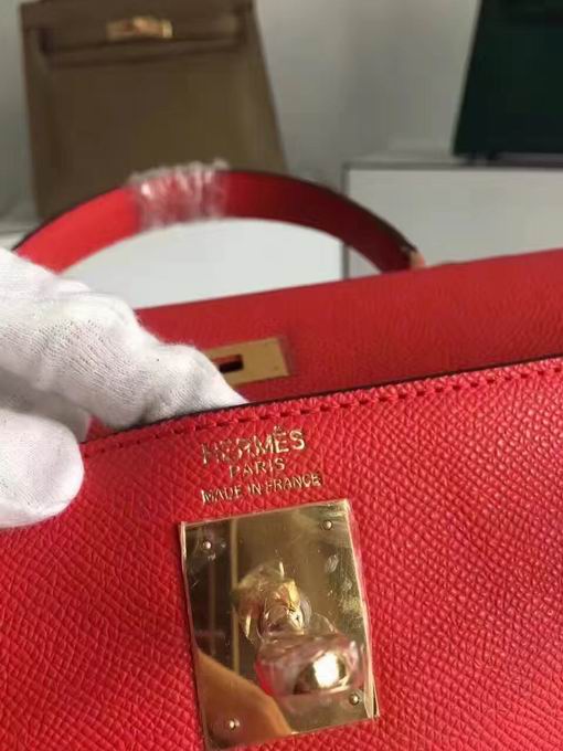 Hermes mini Chevre verrou shoulder Bag in red with gold metal or silver metal