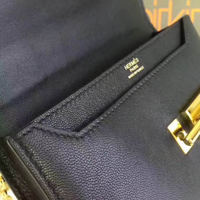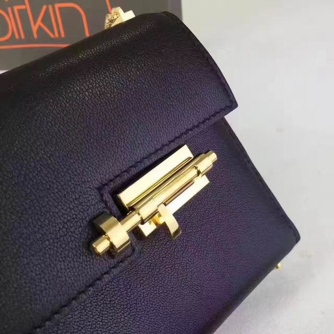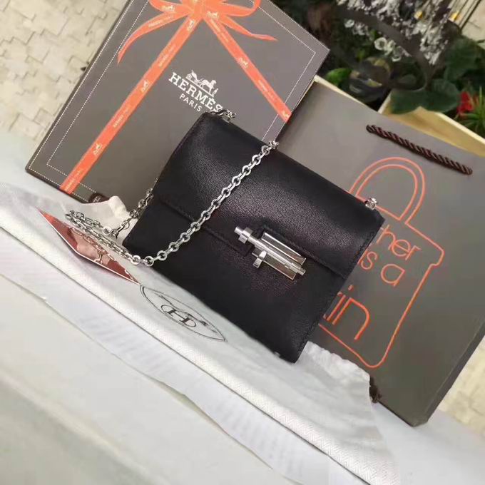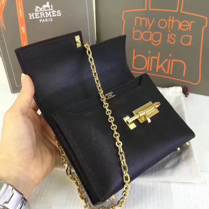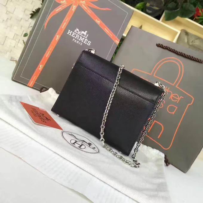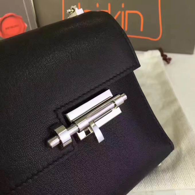 Hermes >> Hermes mini Chevre verrou shoulder Bag in black with gold metal or silver metal