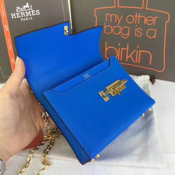 Hermes >> Hermes mini Chevre verrou shoulder Bag in blue with gold metal or silver metal
