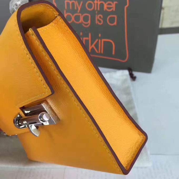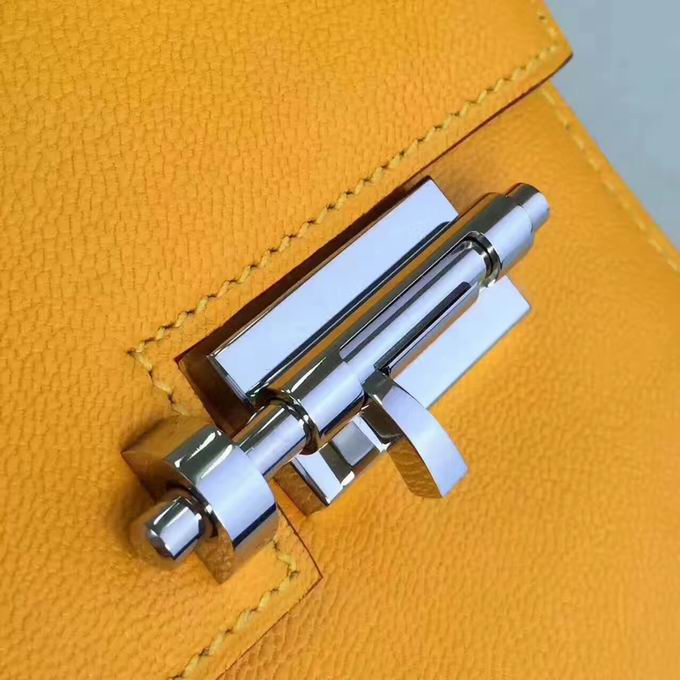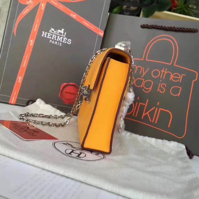 Hermes >> Hermes mini Chevre verrou shoulder Bag in orange with gold metal or silver metal