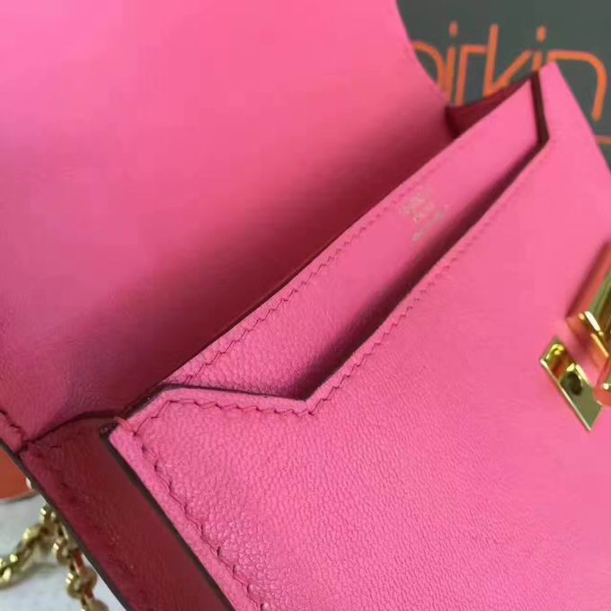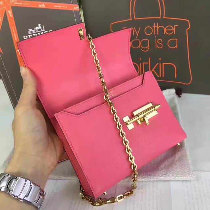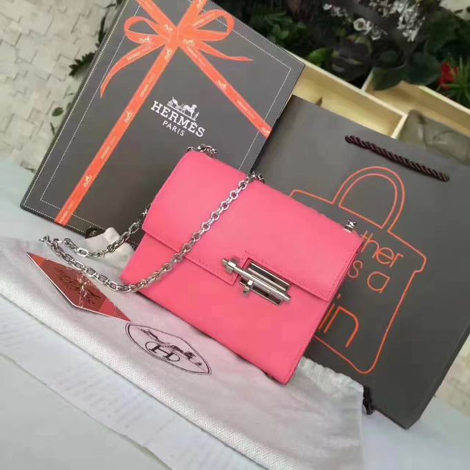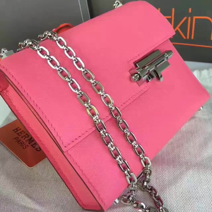 Hermes >> Hermes mini Chevre verrou shoulder Bag in Rose with gold metal or silver metal
