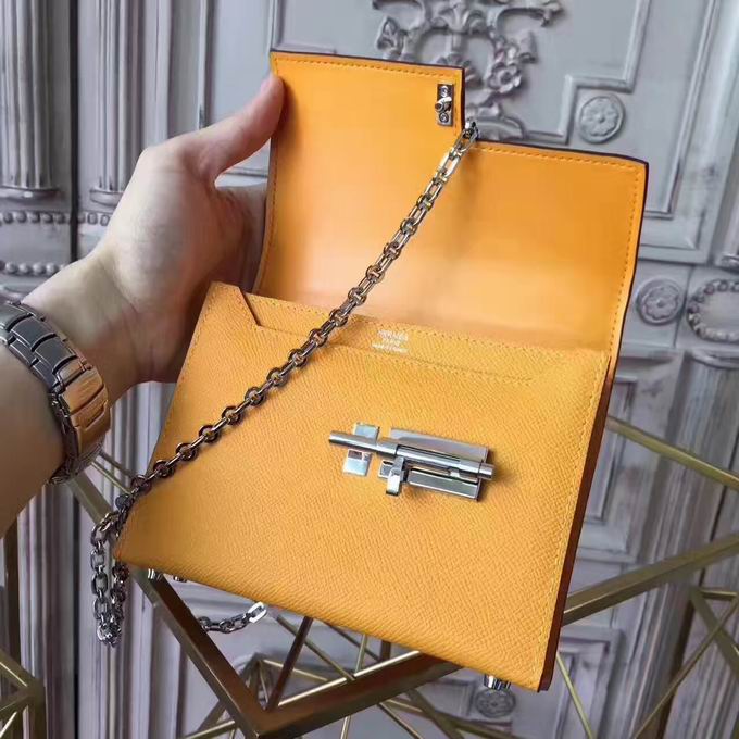 Hermes >> HERMES MINI EPSOM VERROU SHOULDER BAG in yellow with silver metal