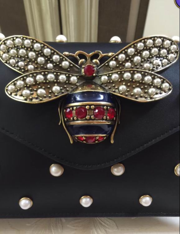 Gucci Leather top handle bag with moth black