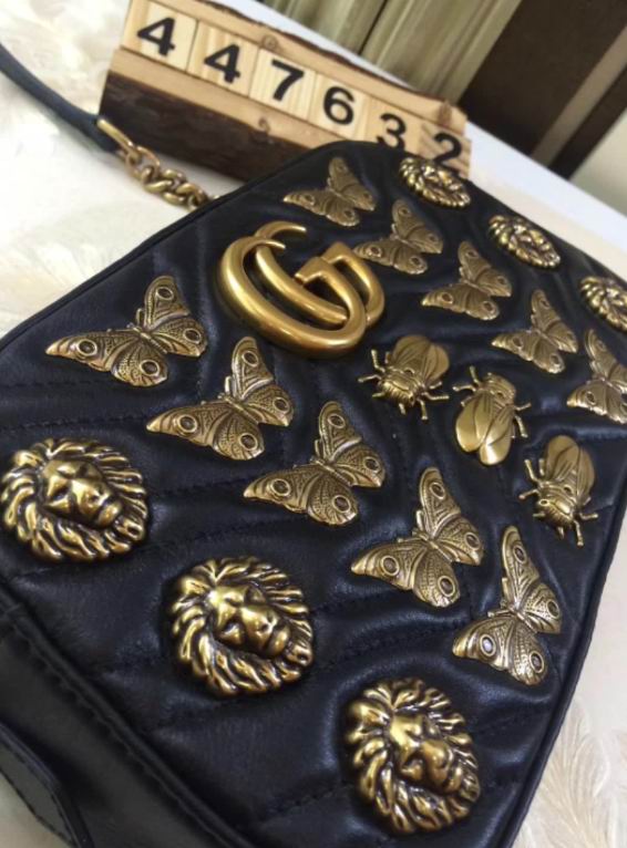 >> Gucci GG Marmont animal studs shoulder bag black leather