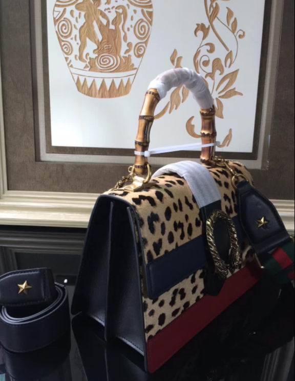 Gucci >> Gucci Dionysus leopard print top handle bag leopard print calf hair