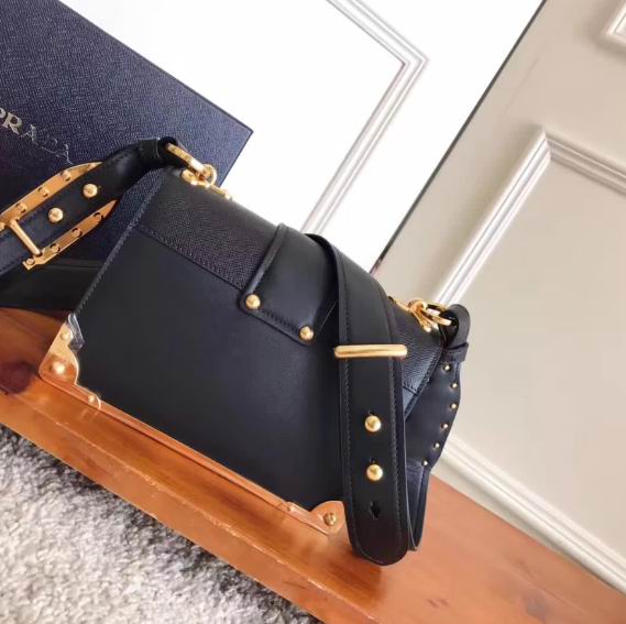 Prada black calf leather cahier bag