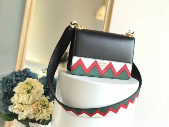 Prada Esplanade Saffiano and calf leather bag astral black & red