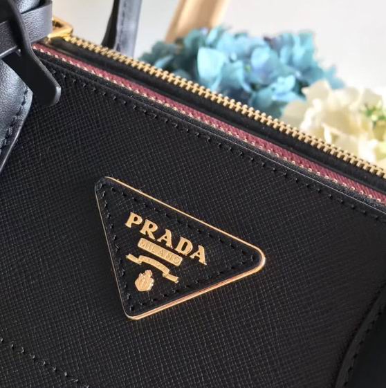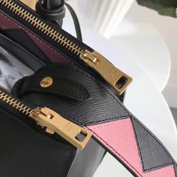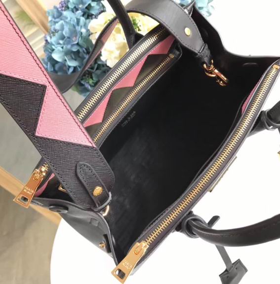 Prada new style black & pink calf leather paradigme bag