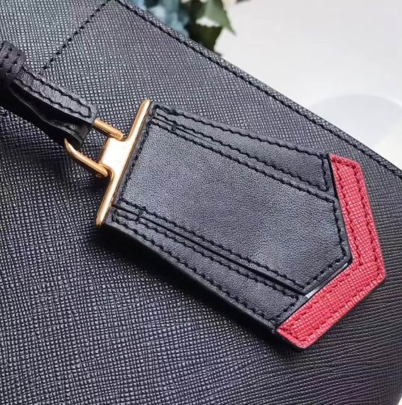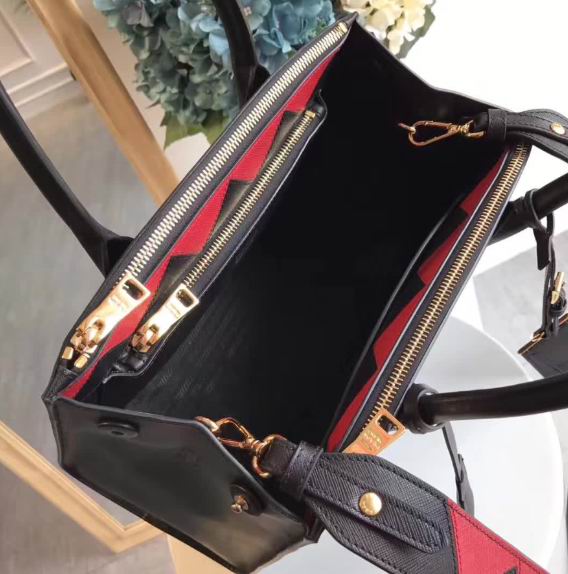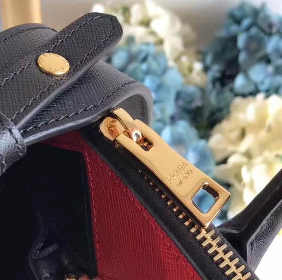 Prada Esplanade Saffiano and calf leather bag astral black & red