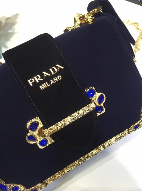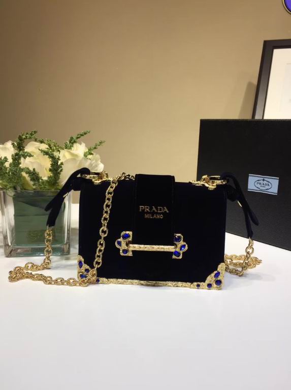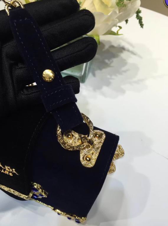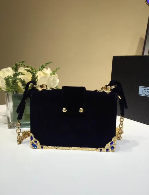 Prada Velvet bag with green gemstone