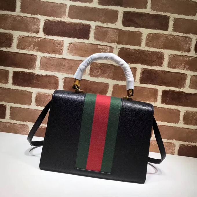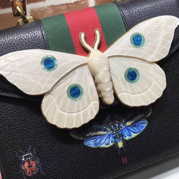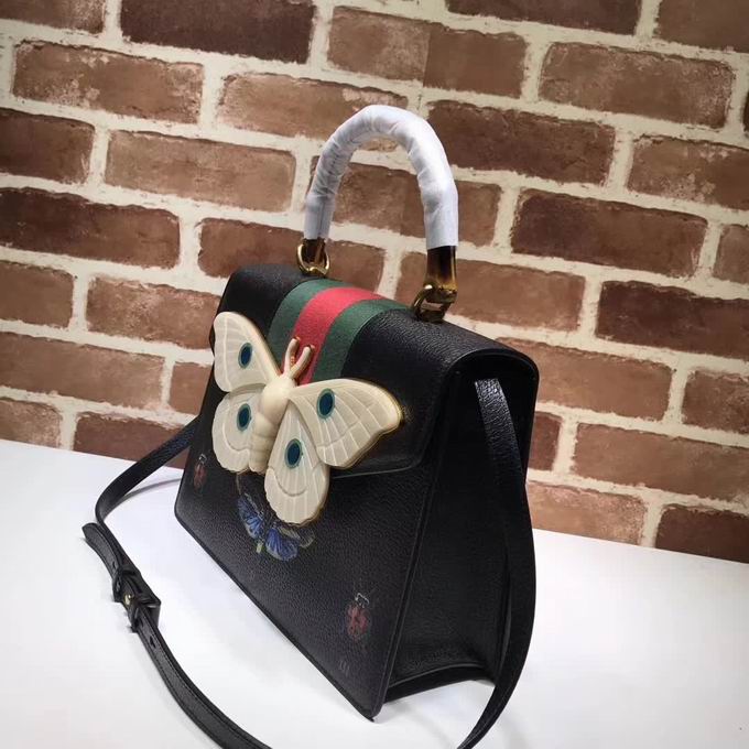>> Gucci Leather top handle bag with moth black