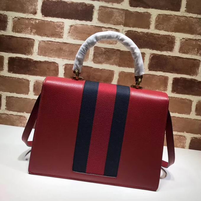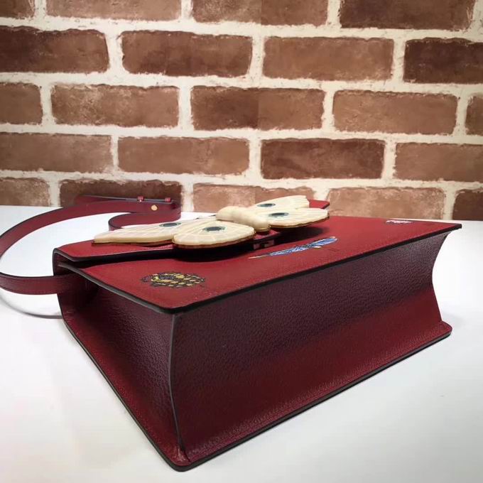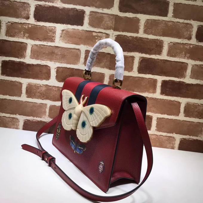 >> Gucci Leather top handle bag with moth red