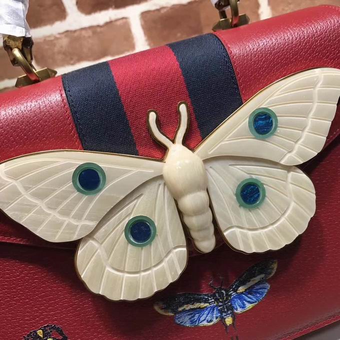 Gucci Leather top handle bag with moth red