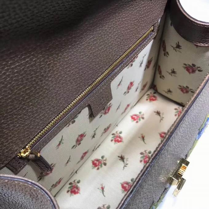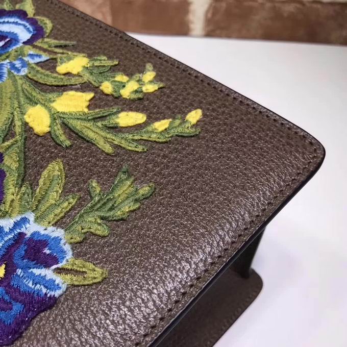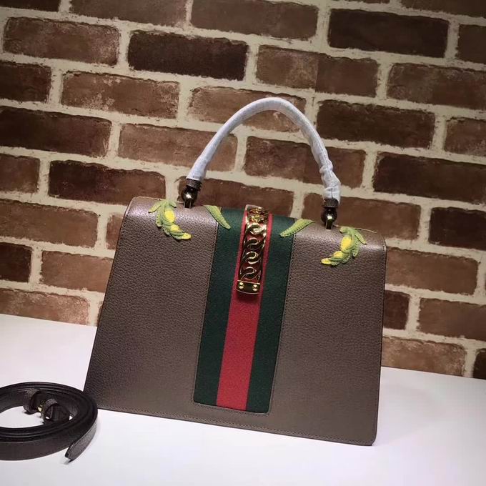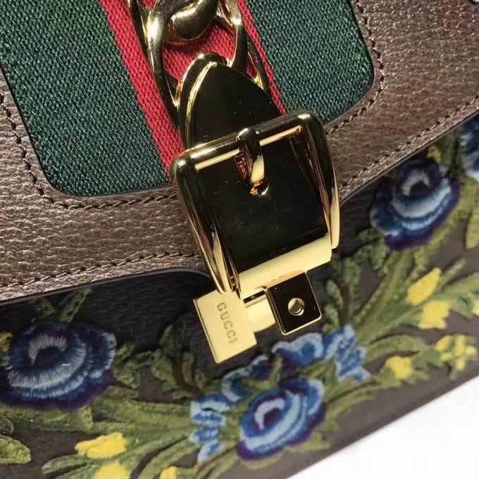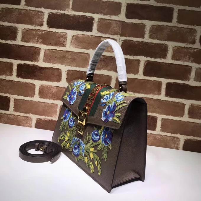 Gucci >> Gucci Sylvie embroidered leather top handle bag brown leather