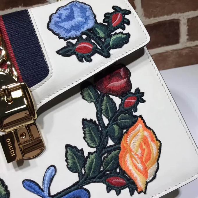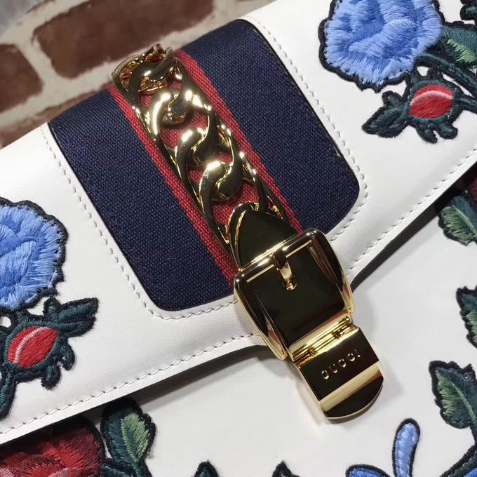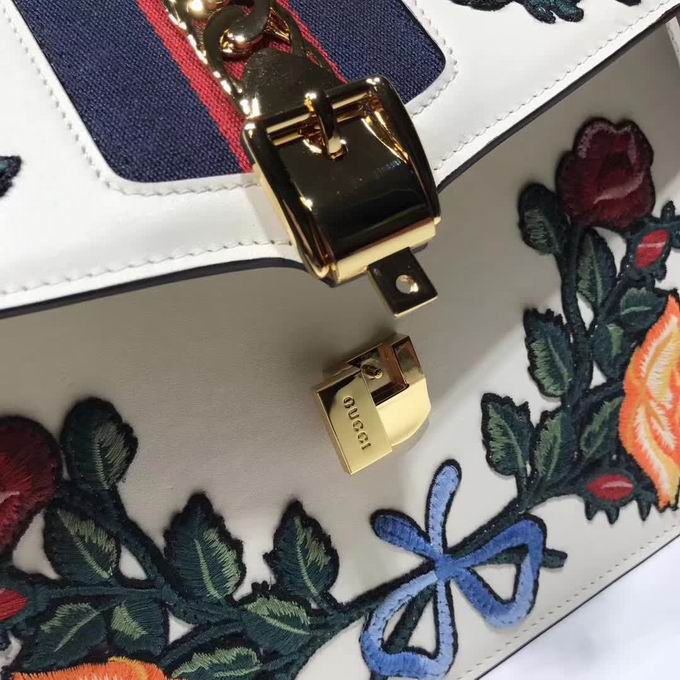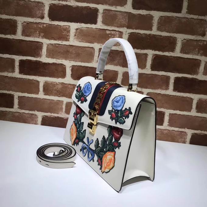 Gucci >> Gucci Sylvie embroidered leather top handle bag white leather