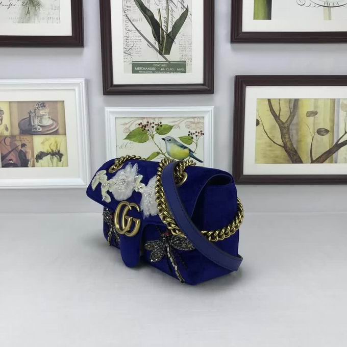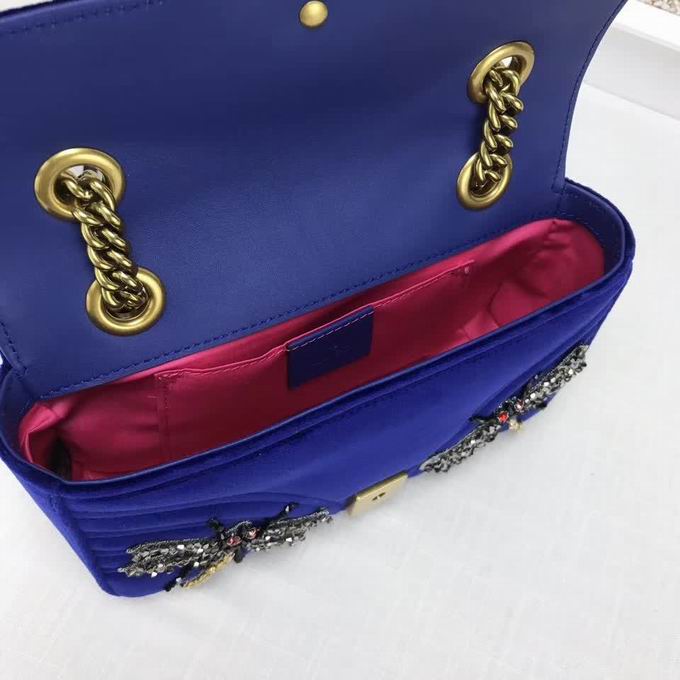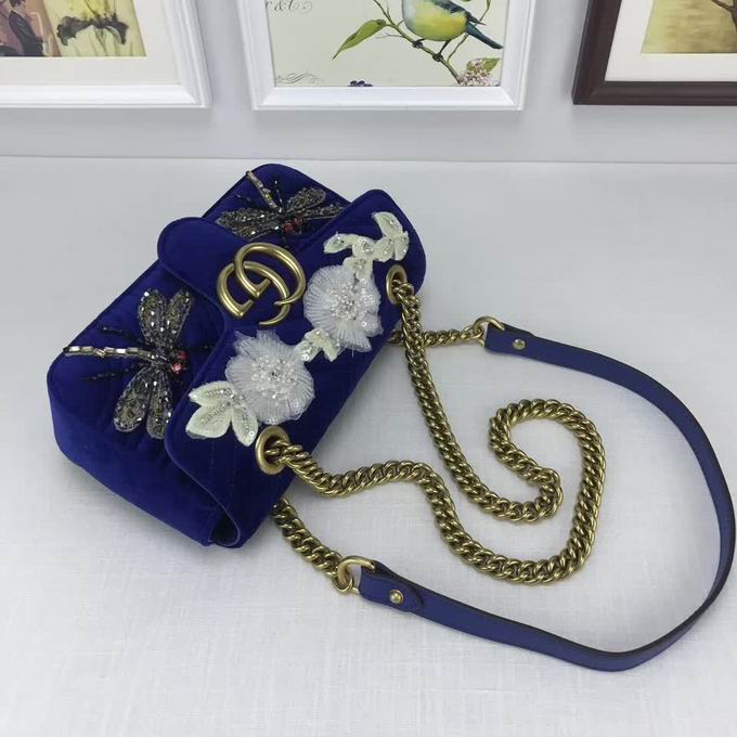 Gucci >> Gucci GG Marmont embroidered velvet mini bag cobalt blue chevron velvet