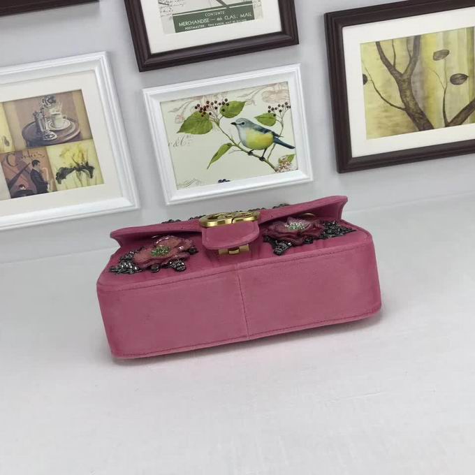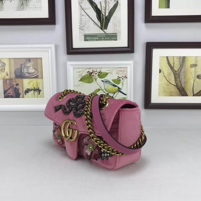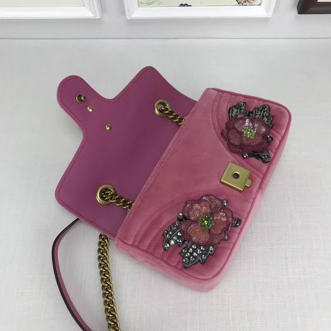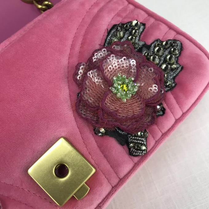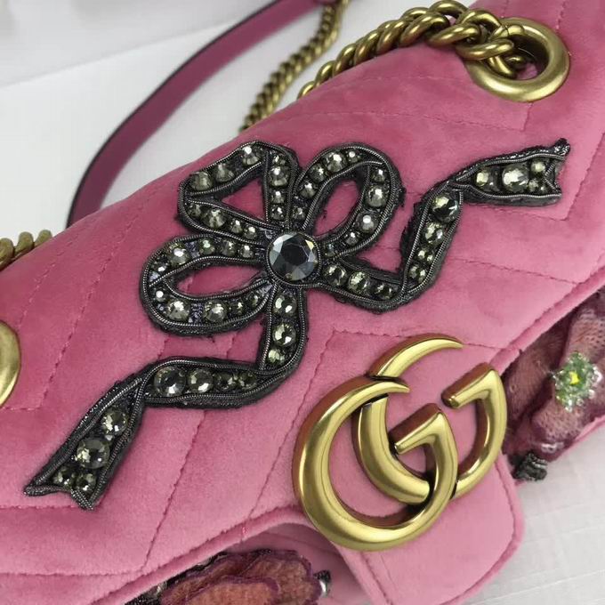 Gucci >> Gucci GG Marmont embroidered velvet mini bag pink chevron velvet