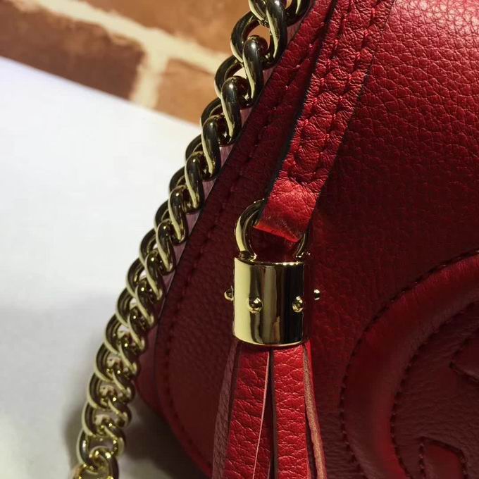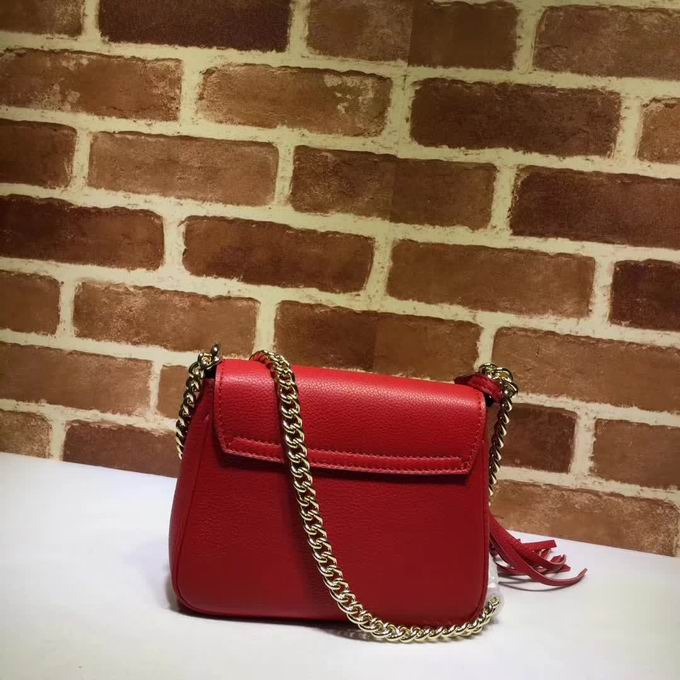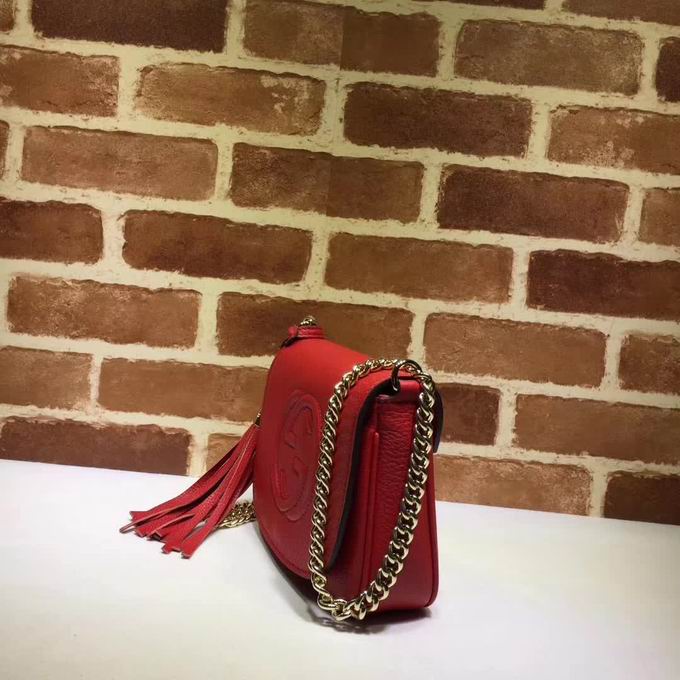 >> Gucci leather shoulder bag with a leather tassel red