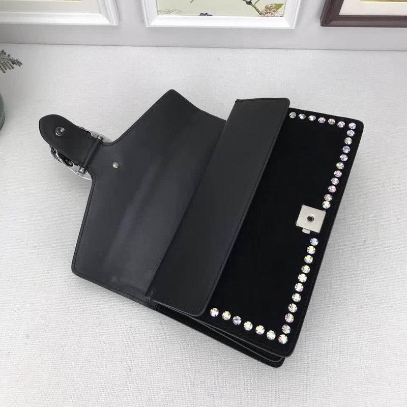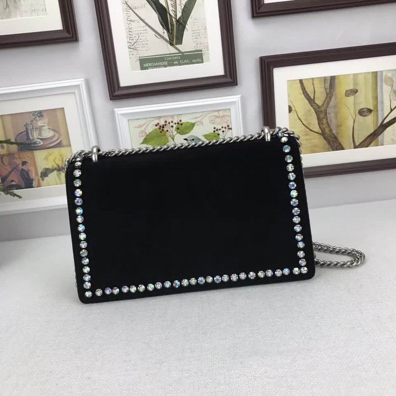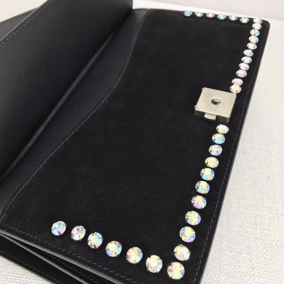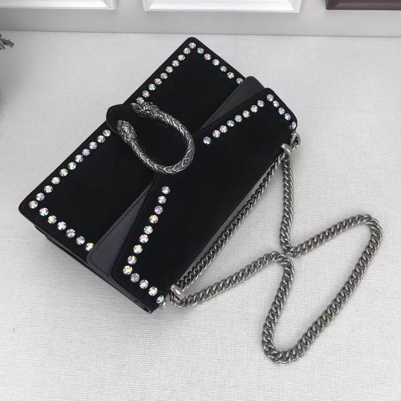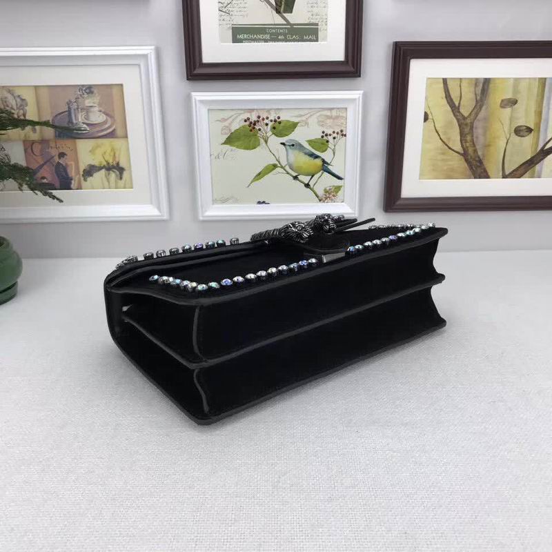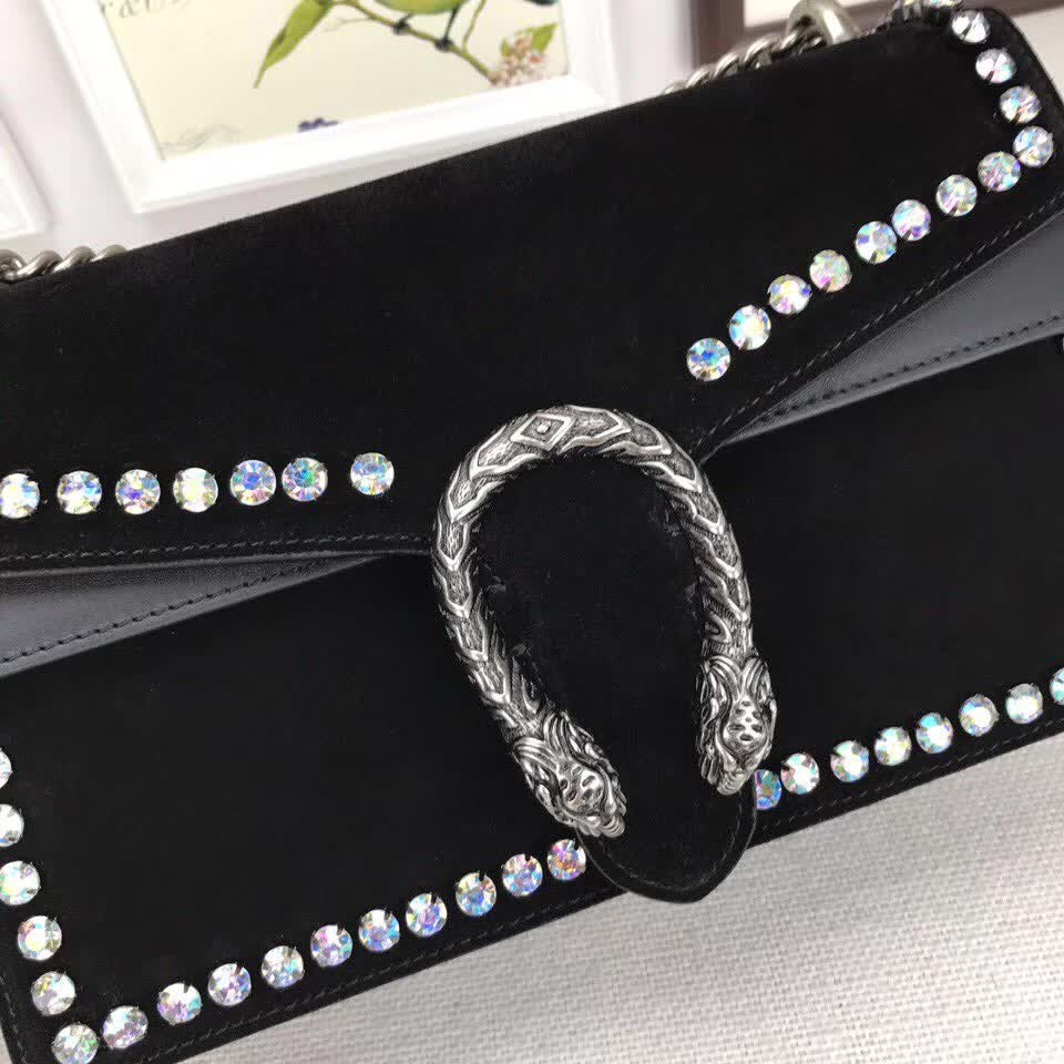 >> Gucci Black Nubuck Leather shoulder bag with crystals