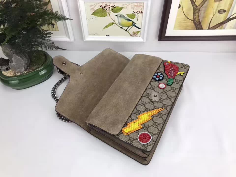 >> Gucci Dionysus GG Supreme shoulder bag with birds