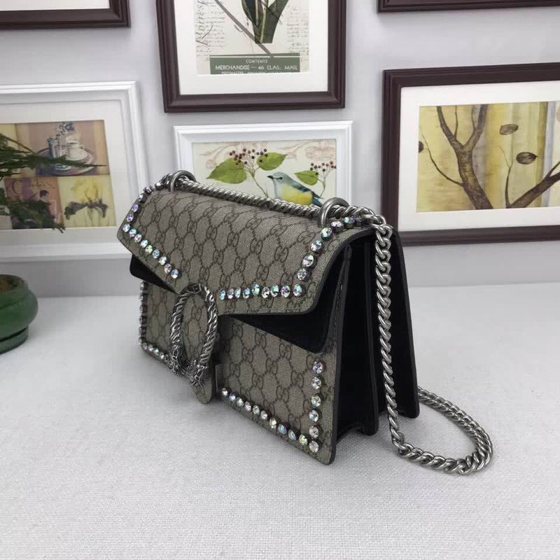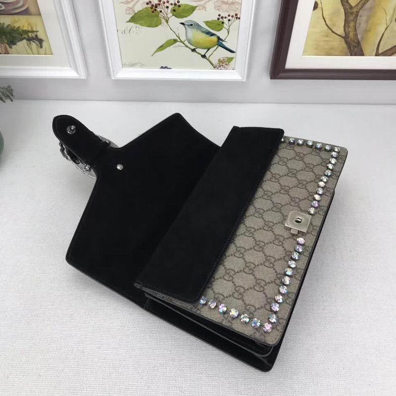 Gucci >> Gucci Dionysus GG Supreme shoulder bag with crystals black