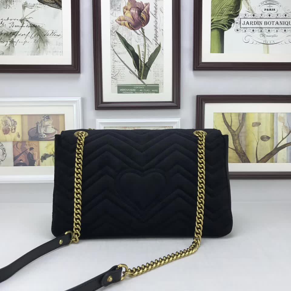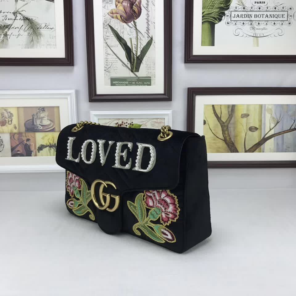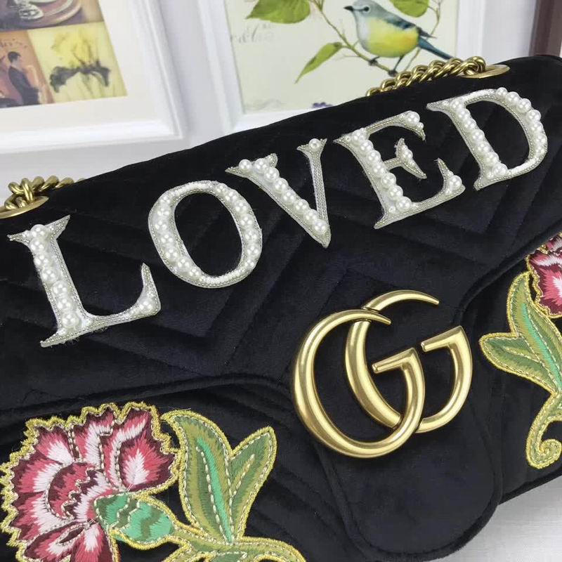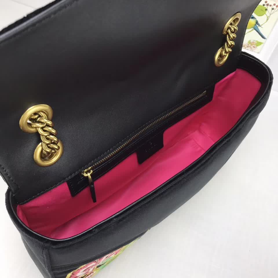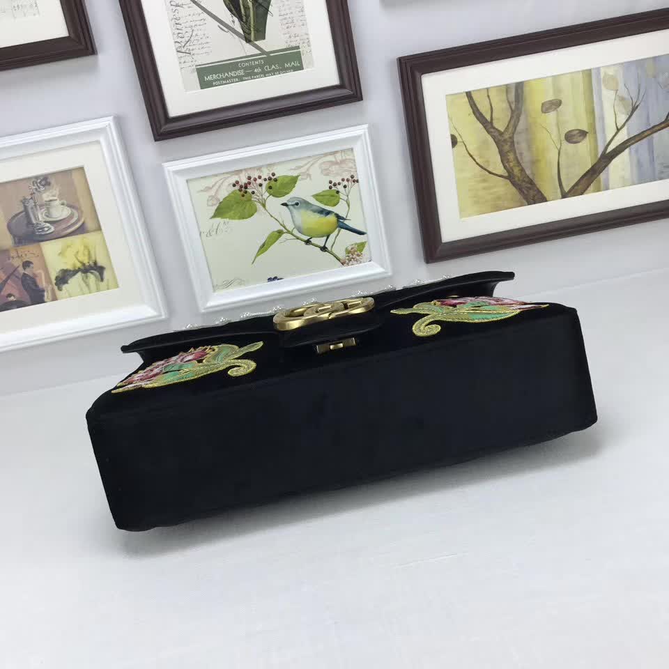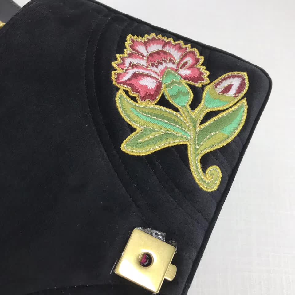 >> Gucci GG Marmont embroidered velvet bag black chevron velvet