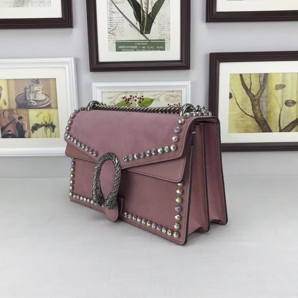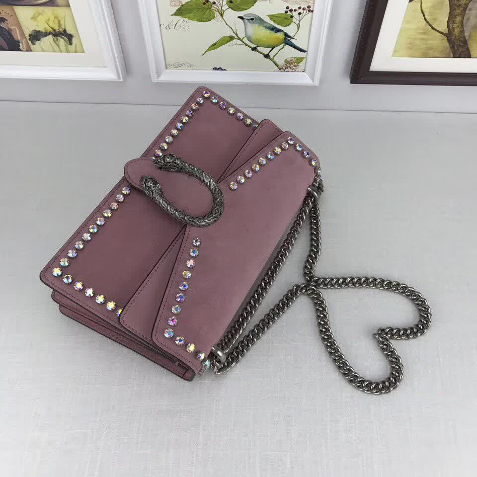>> Gucci Pink Nubuck Leather shoulder bag with crystals