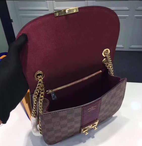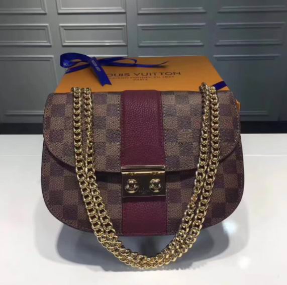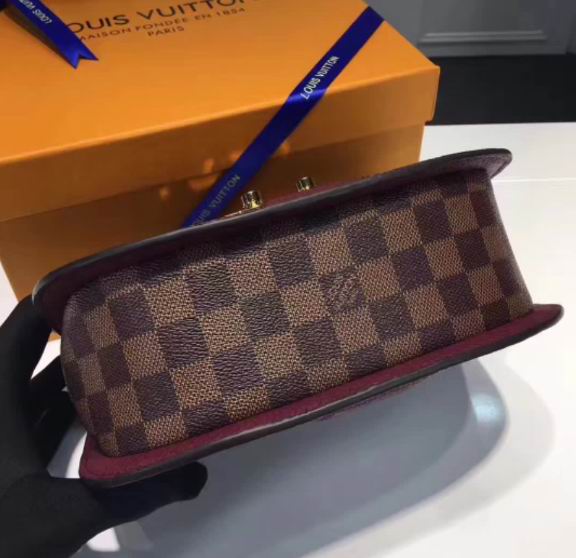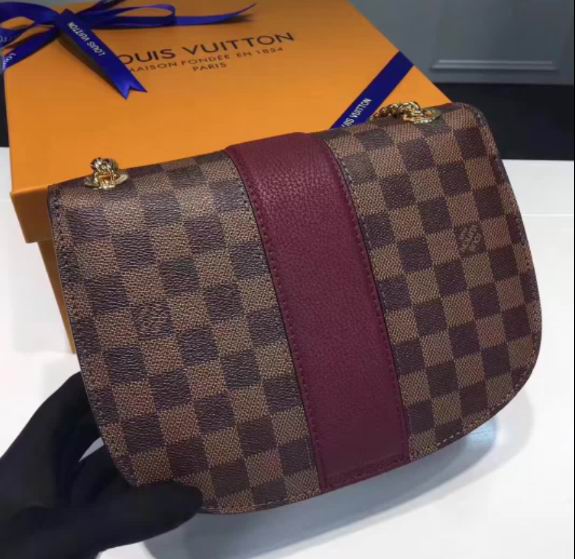 >> Louis Vuitton Coated Damier Ebene canvas and Cuir Taurillon leather exterior Wight bag Bordeaux