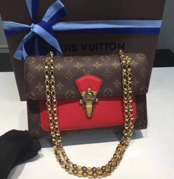 >> Louis Vuitton Monogram coated canvas with colourful calfskin VICTOIRE Bag Cherry