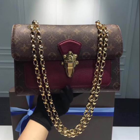 >> Louis Vuitton Monogram coated canvas with colourful calfskin VICTOIRE Bag Raisin