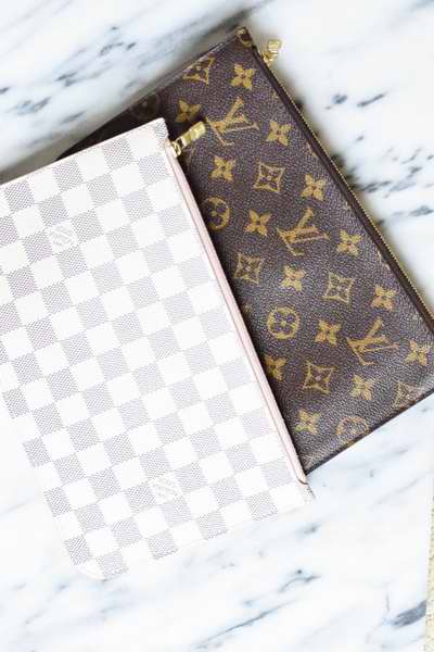 In general, the Louis Vuitton Neverfull is an iconic, luxury bag. In all honesty, I feel that any lady who is a lover of luxury goods, and handbags should own at least one size, of this bag. I do believe that each bag serves a different purchase, however I do not own the PM size, so I cannot speak for that. Between the MM and the GM sizes, I have found that they each greatly serve different purposes, which you can read about below. The Louis Vuitton Neverfull bag is a classic tote style handbag. Introduced in 2007 by Louis Vuitton, the Neverfull features a canvas exterior and textile lined interior. The bag is trimmed in natural cowhide leather trim, including two straps for carrying the bag. Each Neverfull, now comes with a detachable clutch that can be attached to the interior of the bag and used for additional storage, or remove and used on its owns as a pochette! This is one of my personal favorite features of the bag. You basically have two bags in one, that are wonderful on their own, or work great together. The bag, and detachable clutch, each feature gold plated hardware, that matches well with each canvas option.