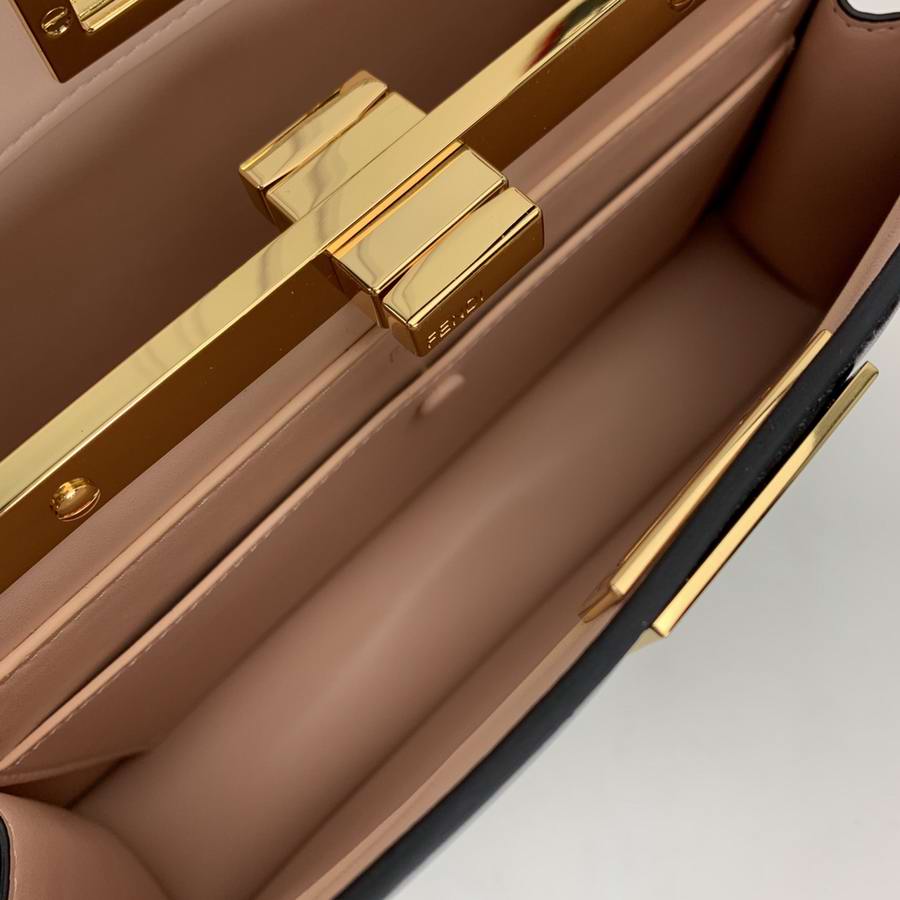 Iconic Peekaboo I See U bag in horizontal design made of yellow leather and embellished with the classic twist lock on both sides. Featuring a soft pink nappa leather lining, two compartments separated by a stiff partition, an inner pocket and gold-finish metalware. Can be carried by hand or on the shoulder thanks to its handle and the adjustable, detachable shoulder strap