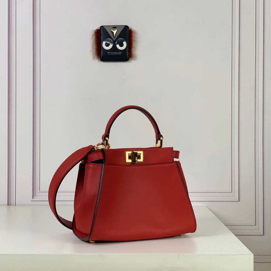 Iconic small Peekaboo bag, made of dark brown leather and embellished with the iconic twist lock on both sides. Featuring soft, nubuck leather lining with a Pequin motif, two compartments separated by a stiff partition, an inner zip pocket and gold-finish metalware. The bag can be carried by hand or worn either on the shoulder or cross-body thanks to the handle and adjustable, detachable shoulder strap