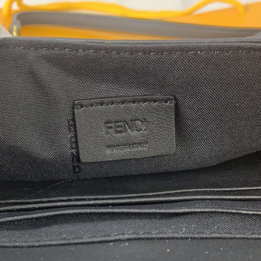 Iconic mini Baguette bag made of black soft nappa leather with a three-dimensional texture FF motif. Decorated with an FF clasp.