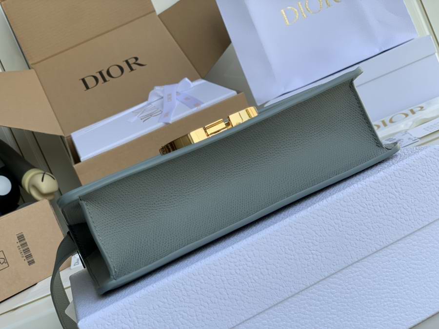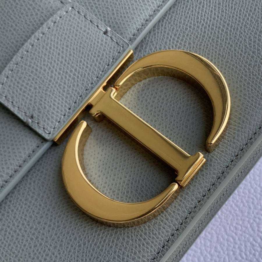 30 Montaigne flap bag in denim blue grained calfskin with CD clasp.