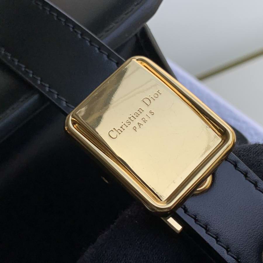 Adjustable leather shoulder strap with 'Christian Dior' military-inspired buckle