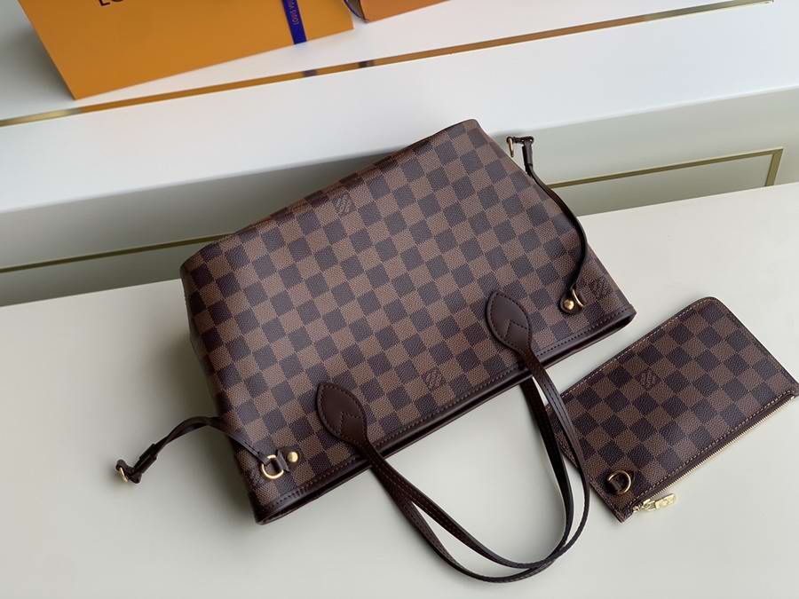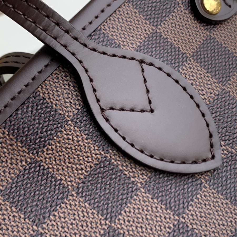 The Neverfull PM tote pairs timeless design with heritage details. Crafted from Damier Eb??ne canvas with natural cowhide trim, it is capacious yet not bulky, with side laces that cinch for a sleek allure or loosen for a casual look. Slim, comfortable handles slip easily over the shoulder or arm. Lined in colourful textile, it features a removable pouch that can be used as a clutch or an extra pocket.
