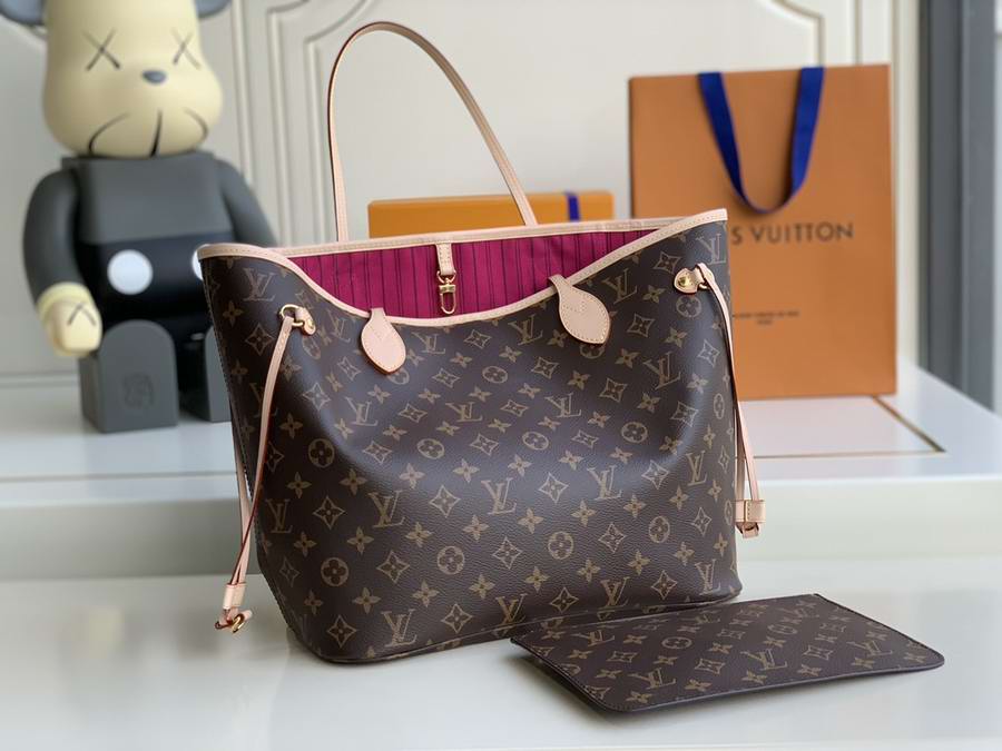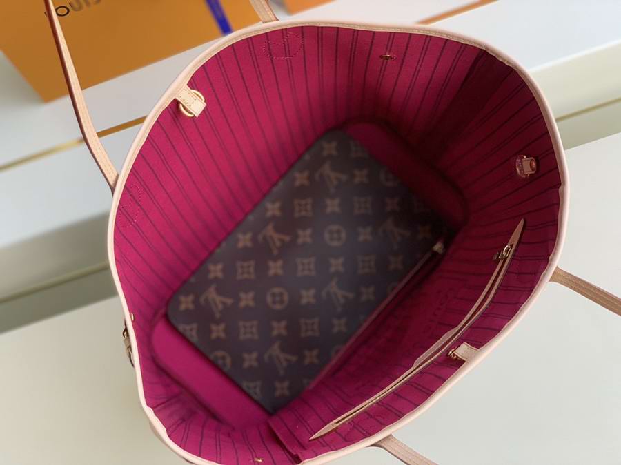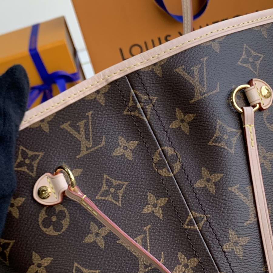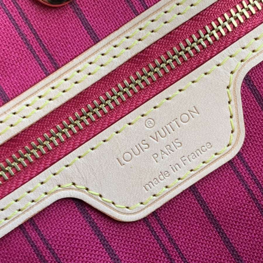 The Neverfull MM tote unites timeless design with heritage details. Made from supple Monogram canvas with natural cowhide trim, it is roomy yet not bulky, with side laces that cinch for a sleek allure or loosen for a casual look. Slim, comfortable handles slip easily over the shoulder or arm. Lined in colourful textile, it features a removable pouch that can be used as a clutch or an extra pocket.