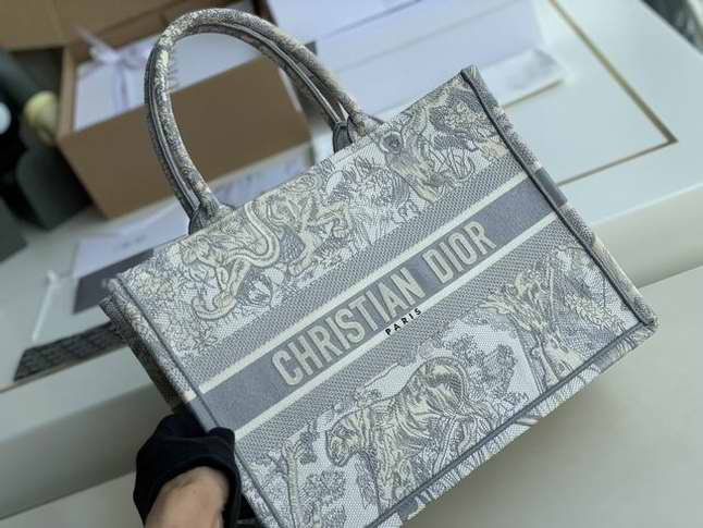 Introduced by Maria Grazia Chiuri, the Dior Book Tote has become a staple of the Dior aesthetic. Designed to hold all the daily essentials, the style has been fully embroidered with a gray Toile de Jouy motif. Adorned with the 'Christian Dior' signature on the front, the bag exemplifies the House's signature savoir-faire and may be carried by hand or worn over the shoulder.
