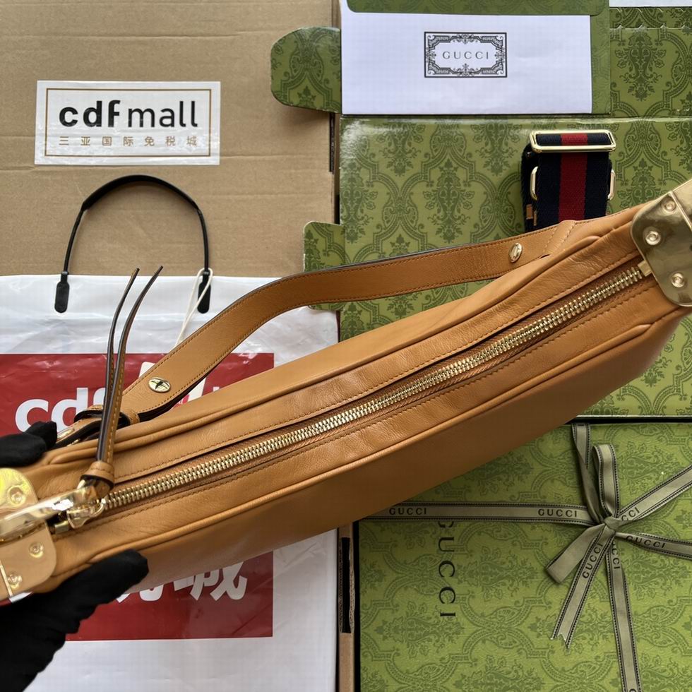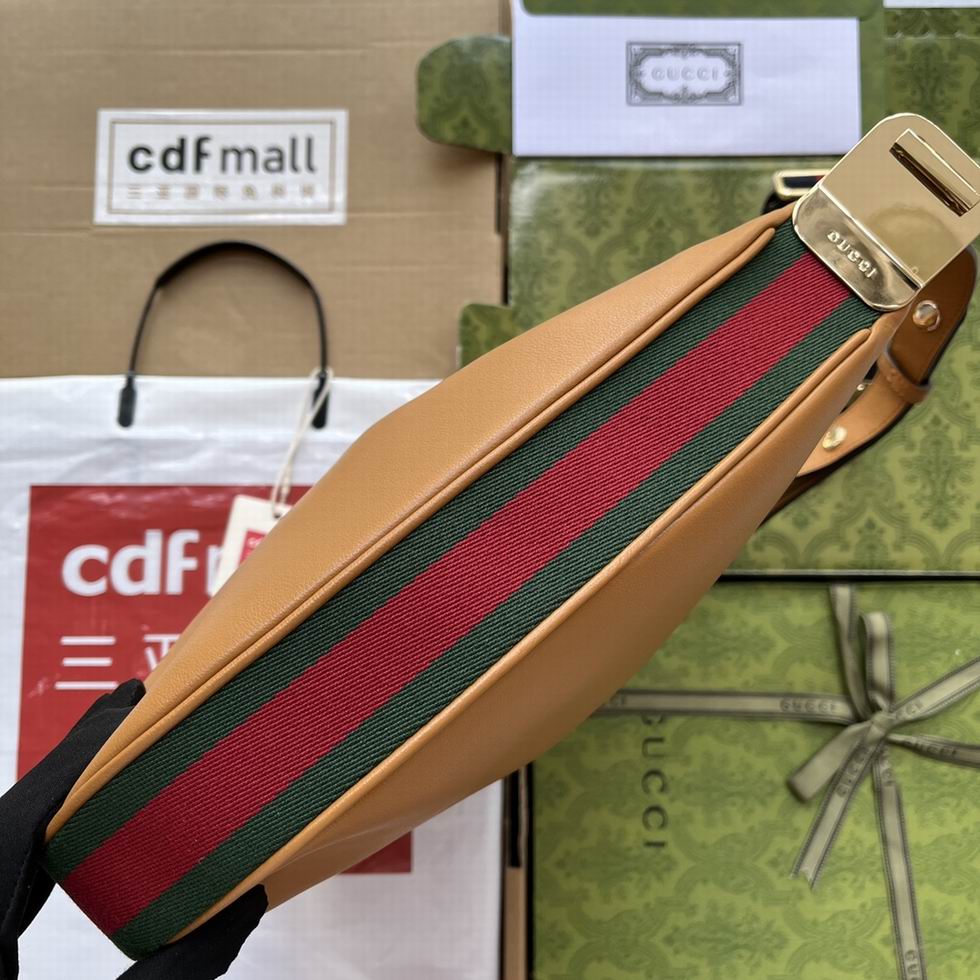 An ode to the timeless Hollywood glamour that shaped Gucci Love Parade, classic elements from the House's archives are reintroduced. Distinguished by its crescent moon shape, the accessory is further defined by a G shaped hook closure. Paired with soft materials, the heritage hardware creates a refined design with vintage appeal. This large version is crafted in yellow leather with orange and black Web trim.