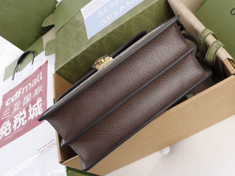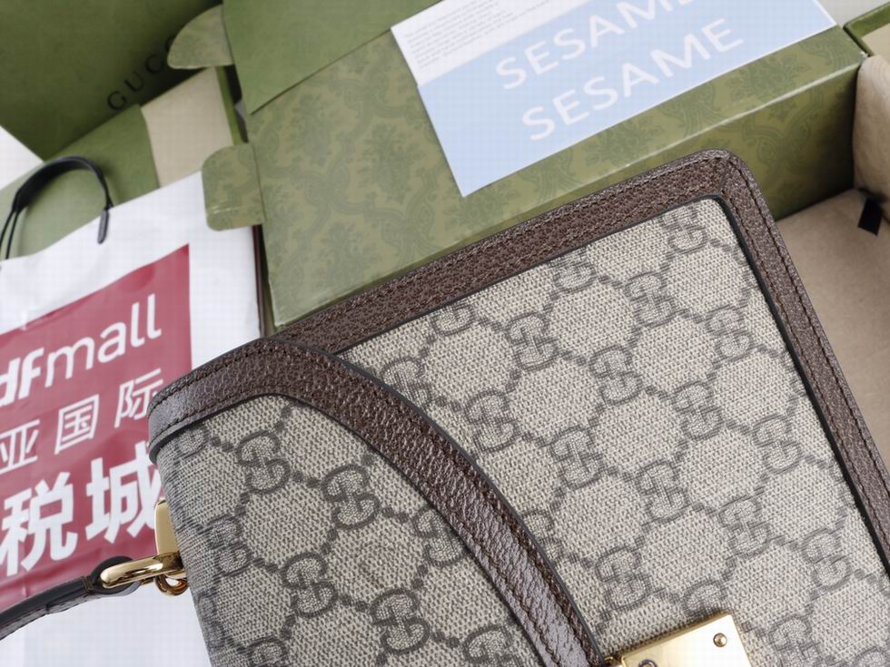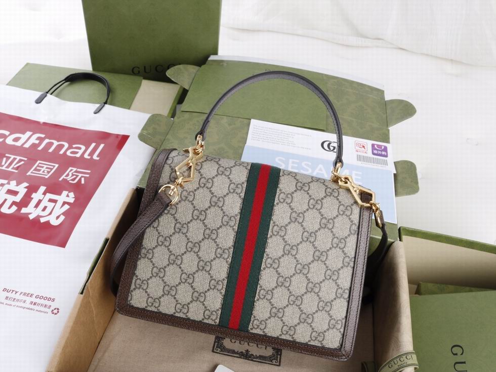 The world of Ophidia continues to evolve with new iterations each season. The top handle bag is presented as part of the Epilogue collection with a detachable shoulder strap. The vintage influenced square shape is accentuated by the House Web stripe and Double G hardware??a contemporary take on a Gucci archival belt buckle from the '70s. Crafted from the House's monogram canvas, the style has a strong logo feel.