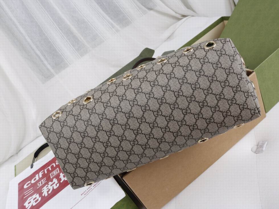 The Ophidia is reinvented with eye-catching hardware. Creating a playful contrast, the medium-sized tote bag is animated with a jumbo GG motif stated in camel and light pink. With recognizable design elements in a practical shape, this medium sized tote is trimmed with light pink leather and topped with Double G hardware.