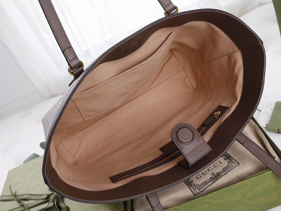 A classic combination of the House's most defining codes??the GG motif and Web stripe??the world of Ophidia continues to evolve, incorporating new shapes and silhouettes each season. With recognizable design elements in a practical new shape, this new medium sized tote is trimmed with textured leather and topped with Double G hardware. Thanks to its long leather handles, the style can also be carried as a shoulder bag.