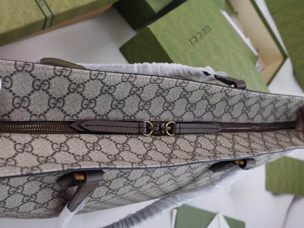 A classic combination of the House's most defining codes??the GG motif and Web stripe??the world of Ophidia continues to evolve, incorporating new shapes and silhouettes each season. With recognizable design elements in a practical new shape, this new medium sized tote is trimmed with textured leather and topped with Double G hardware. Thanks to its long leather handles, the style can also be carried as a shoulder bag.