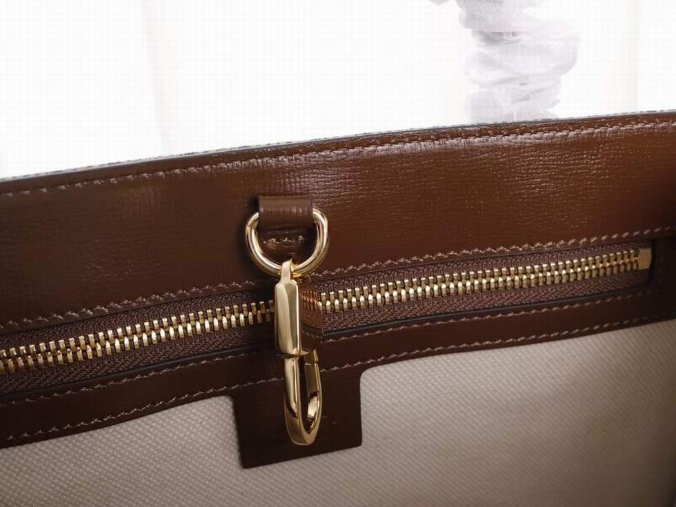 Designed in a structured shape, this small tote bag is crafted from GG Supreme canvas with brown leather trim, the small size double-handled silhouette has a top handle and shoulder strap.