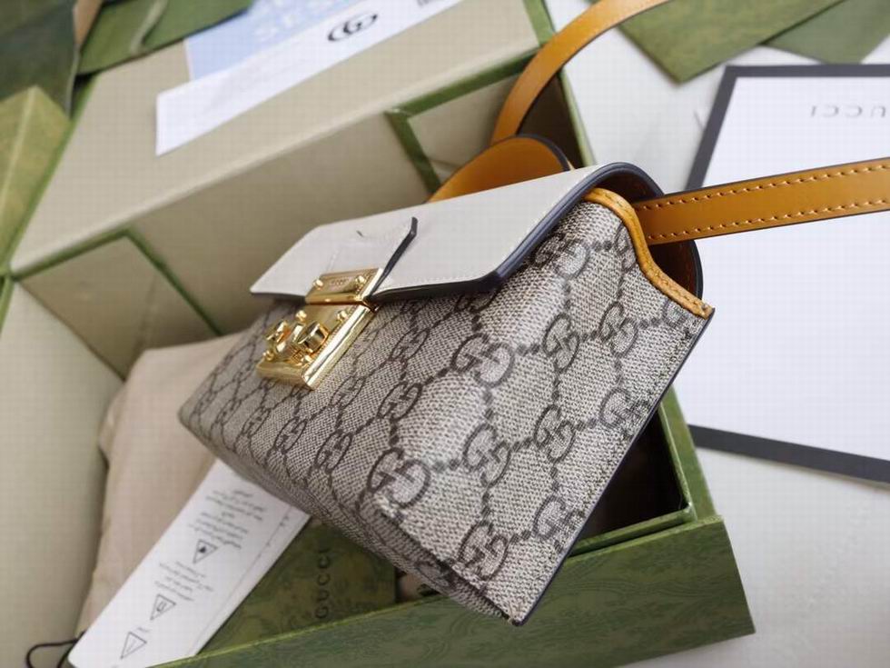A mini version of the archival style, the Padlock is defined by its signature lock and key closure. The accessory is crafted from beige and ebony GG Supreme canvas with a white leather top. Adding a pop of color, burnt orange leather details complete the mini bag.