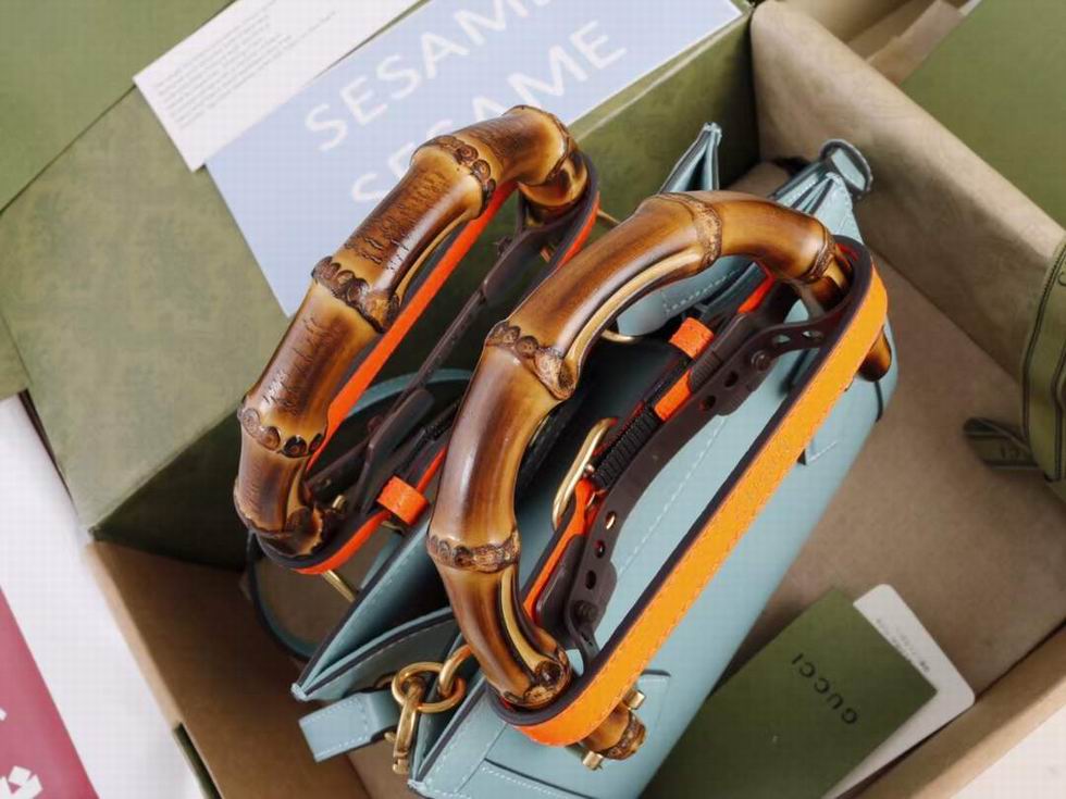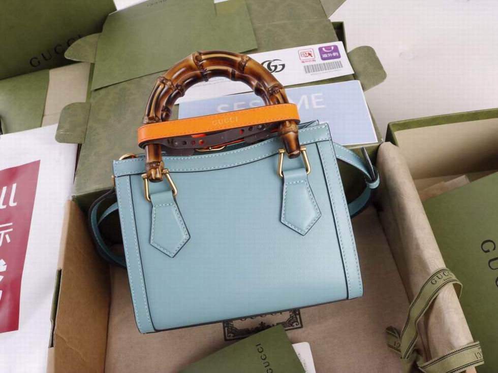 Instantly recognizable emblems of the brand, logos enrich designs in new and unexpected ways. Behind every logo lies the tradition and value of the House, an everlasting medium one can wear again and again. Following the idea of constant change and experimentation, different iterations of the logo have been presented each collection. The jumbo GG, a new, maximalist version of the historic monogram, animates a selection of ready-to-wear and accessories for the Aria collection. This mini Gucci Diana tote is completed by a brown leather trim.